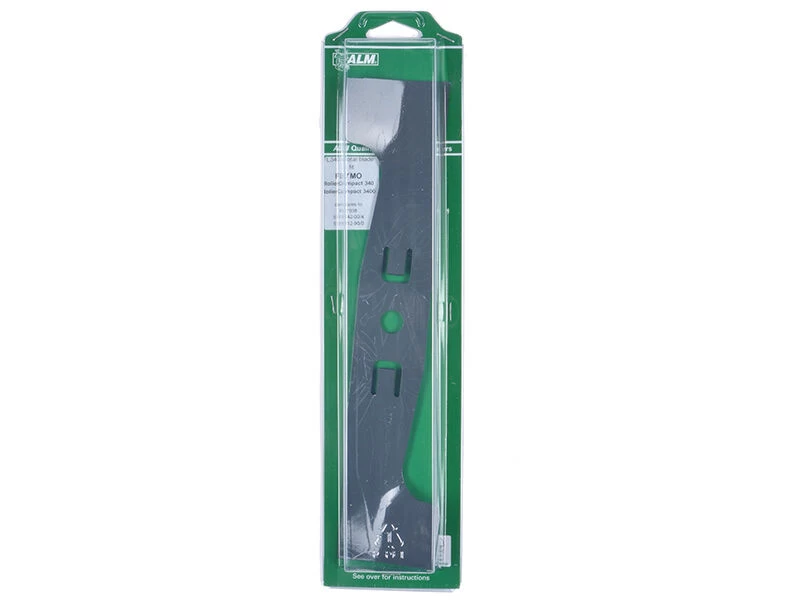 The ALM Manufacturing 34cm (13.5in) FL340 Metal Blade is produced to suit the following Flymo 34cm models:- Roller Compact 340, Roller Compact 3400 34cm.