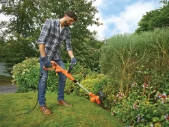 The Black & Decker BESTA525 AFS Strimmer® features an innovative AFS™ Automatic Line Feed System and a Trim & Edge® Facility, simply flip the head for neat borders and edging. The integrated wire protector acts as an edging guide and helps prevent damage to border plants. An extendable telescopic pole allows for specific height setting depending on the user’s needs. Fitted with a secondary adjustable auxiliary handle for greater comfort and control at all angles.