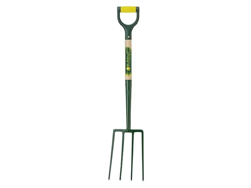 The Bulldog Evergreen Digging Fork has a long socket for durability. The head is manufactured from durable carbon steel, forged from one piece to give strength and durability. Epoxy coated for rust resistance and reduced soil adhesion. Fitted with an ash shaft and a modern forward tilt ergo grip handle to help reduce stress when digging.