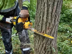 The DEWALT DCMCS574 XR FlexVolt Chainsaw has an energy efficient brushless motor for longer run time. Being battery powered, it requires less maintenance than a petrol chainsaw, and has an auto-oiling system that keeps the chain lubricated.