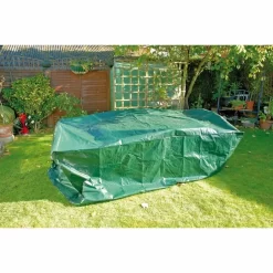 Ideal for small square or circular tables and up to four chairs. Heavy duty polyethylene with steel plated eyelets. Polybag with header.