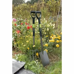 Epoxy coated carbon steel, fully hardened and tempered with plastic coated steel cored shaft and plastic “Y-dee” handle. The overall length of 1050mm is especially useful for people 6ft tall and over, allowing a straighter back when digging, giving less strain and more leverage. Sold loose.
