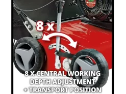 A powerful 4-stroke petrol engine provides ample torque for continuous progress with consistently good results. Speed control allows ecological working. The working depth can be adjusted centrally to 8 different levels, enabling you to adapt the GC-SC 4240 P to the requirements of the particular soil and vegetation.