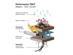 Gardman Weedstop™ Performance fabric is the ideal solution for multiple weed-suppressing tasks including beds, borders, paving and patios. You can also use it under gravel and decorative stone. Water Pore™ treatment allows water and nutrients to pass through.