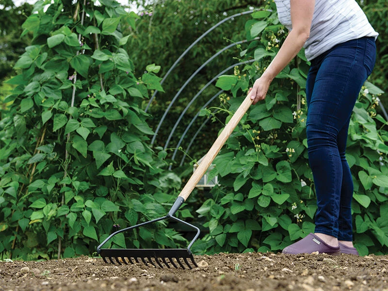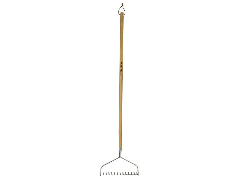 This Kent & Stowe Long Handled Soil Rake is ideal for use in all soil areas. Suitable for gathering stones and waste, perfect for final soil preparation. Its bowed shape allows aeration of the soil. Handcrafted, the handle is made from beautiful FSC® approved ash wood, tapered for comfort. Its length is ideal for easy working and eliminates the need for bending.