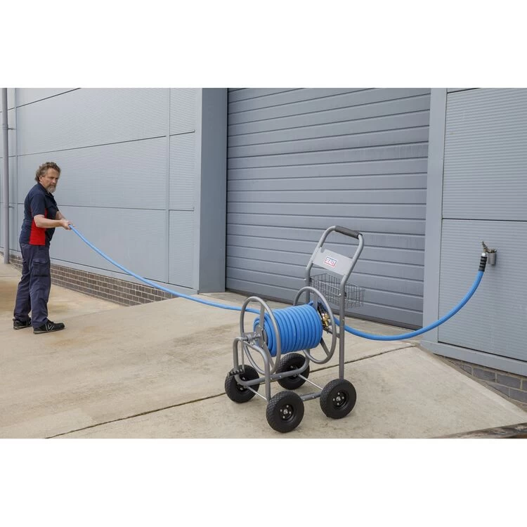 • Can hold up to 120m of Ø13mm standard water hose or 50m of Ø19mm H/D hose (hose not included).