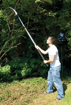 Heavy duty extendable pruning saw with tri-cut blade. The pole extends from 1.5 to 2.5m, perfect for reaching high branches. Pole sections lock in place for extra safety. The durable triple ground blade is shaped for easier branch cutting.